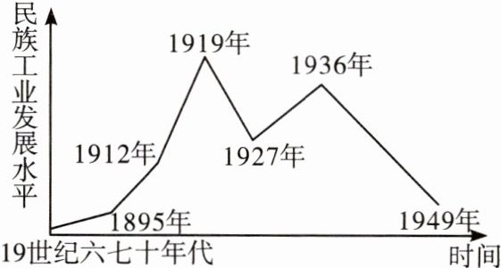2.(江苏南京江宁一模)下图反映了我国近代民族工业发展的曲折历程,其中在1919年民族工业发展出现高峰的最主要原因是(