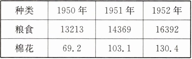 7.(东营中考)下面是建国初期我国主要农产品产量表(单位:万吨),其主要农产品产量变化的原因是(
