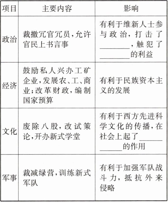 (2)过程:9 月 21 日,慈禧太后等发动政变,囚禁光绪帝,搜捕维新人士,废除变法诏令。