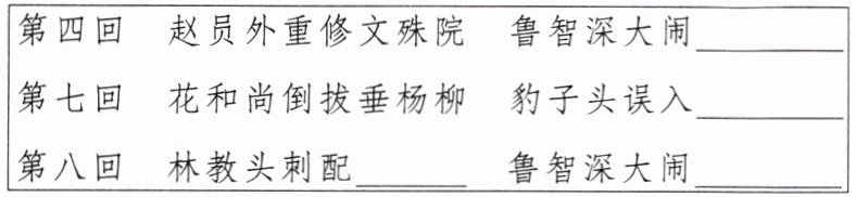 1. 根据下列《水浒传》回目回答问题:第四、七、八这三回的横线处依次填入的内容正确的一项是(