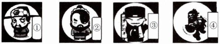 小文:我猜到了第①幅,这是高俅的人物设计。你看,漫画中他穿着一身官服,符合其殿帅府太尉的形象;且漫画将其官帽设计成足球,与小说中高俅靠______得端王赏识的事件非常符合。