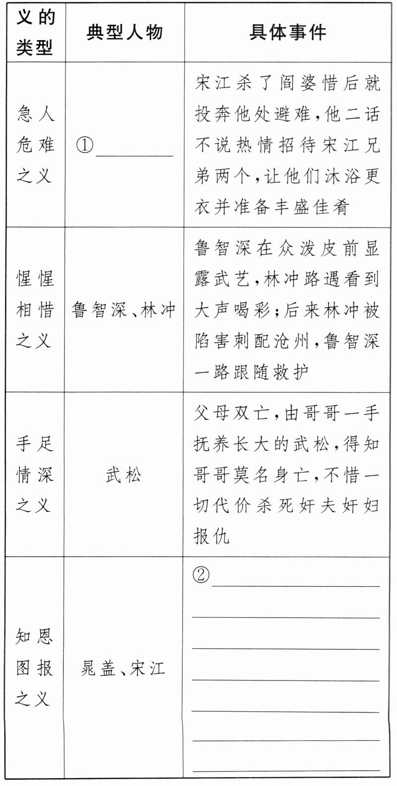 3. 小明读《水浒传》,发现一个“义”字贯穿全书,于是他围绕“义”做了以下归纳。