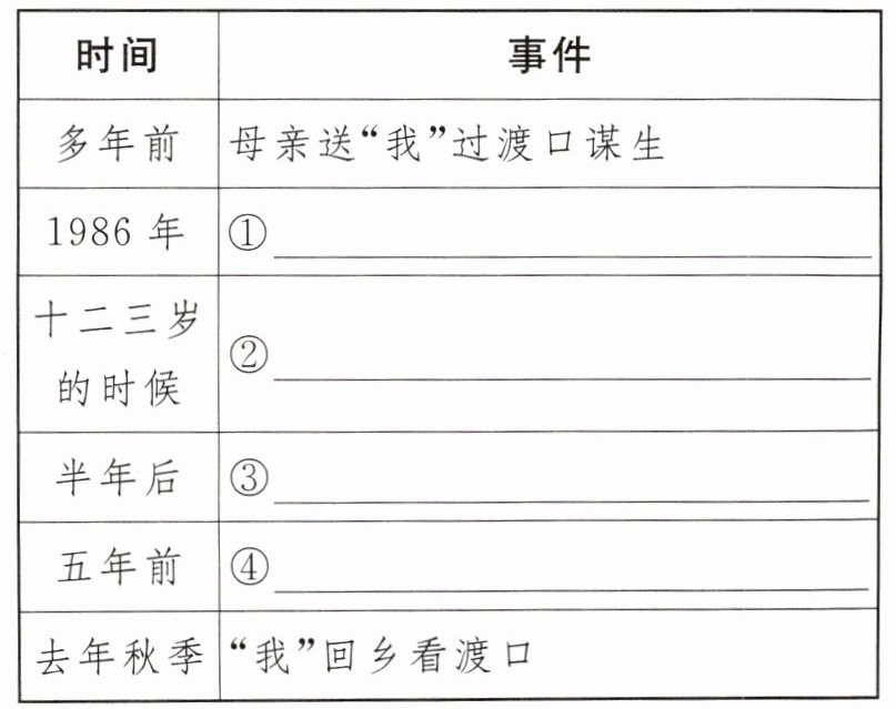 5. 通读全文,完成“我”与渡口的相关事件梳理。(4分)
