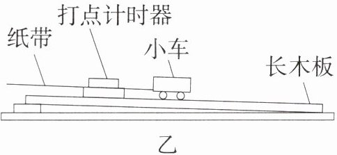 (8)如图乙所示是利用打点计时器测量小车在斜面上运动的平均速度的实验装置,打点计时器是用来记录做直线运动的物体经过相等时间间隔所通过的路程,也可以判断物体通过任意两个位置间的路程所用的时间。通电时,纸带上每相邻两点间的时间间隔为 0.02 s。将打点计时器固定在长木板上,纸带固定在小车上,然后将纸带穿过打点计时器的限位孔,小车带动纸带从斜面上某一位置由静止下滑,打点计时器在纸带上打下的点就反映了小车的运动情况。