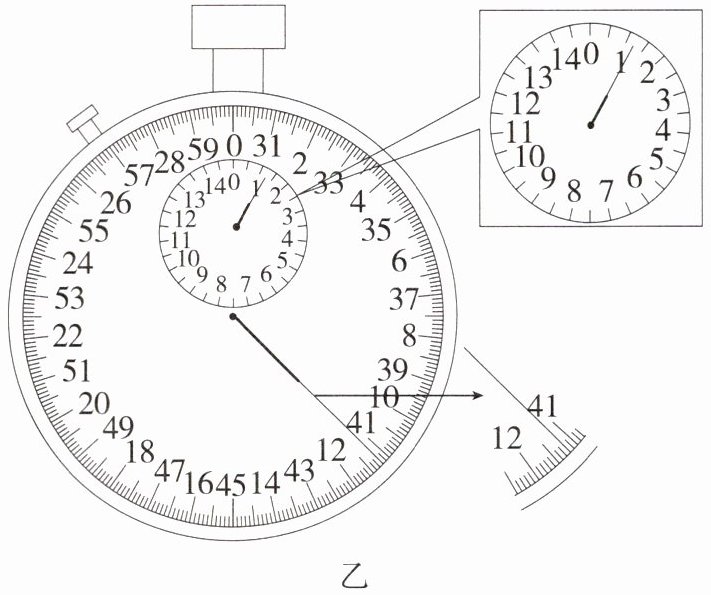 (2)图乙中,秒表小表盘的分度值是0.5 min,指针在1 min和1.5 min之间;大表盘的分度值是0.1 s ,故大表盘的读数是11.2 s,因此秒表读数为1 min 11.2 s,即71.2 s。