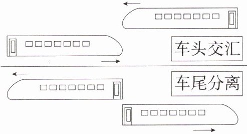 12.「2025 河北衡水六校联考改编」两辆相同的列车相向行驶,均做匀速直线运动,如图所示,从车头交汇到车尾分离总共要