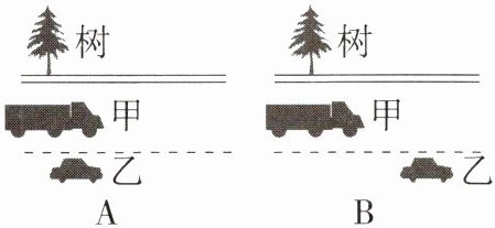 答案 乙 乙车的位置相对于路边的树发生了变化 解析 以路边的树为参照物,甲车的位置没有发生改变,所以甲车没有做机械运动;乙车的位置相对于树发生改变,所以乙车做了机械运动。