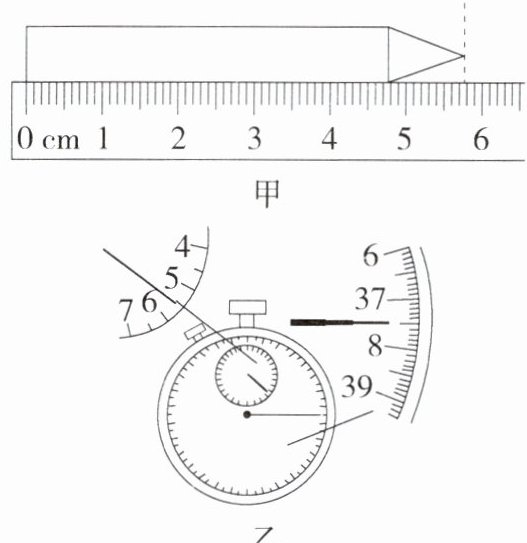 cm。(2)图乙中,秒表的示数是