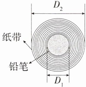 (1)由图可知,n圈纸带的厚度为纸带外圈直径与纸带内圈直径之差的二分之一,故纸带的厚度$d=\frac{D_2-D_1}{2n}$;