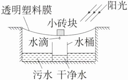 2. 新课标科学态度与责任 我国是一个缺水的国家,因而污水净化具有非常重要的意义,如图为小明设计的污水净化装置。在阳光照射下,污水