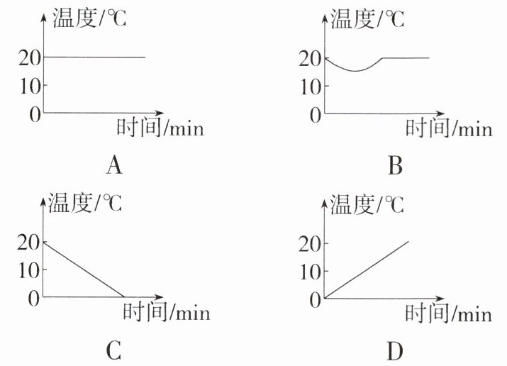 7.「2024山东临沂罗庄期中,★☆」室内温度为20℃,此时用浸有少量酒精的棉花裹在温度计的玻璃泡上,随着酒精的迅速蒸发,下列关于温度计示数随时间变化的图像正确的是 (