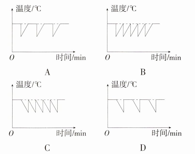 3.新特色教材习题变式「2025湖北武汉汉阳期中,★☆」煮饺子时,水沸腾后人们通常会往锅里加入半碗冷水,使其停止沸腾。当水再次沸腾后再加冷水,反复几次之后饺子就煮熟了。用纵轴表示水温,横轴表示加热时间,下列图像中能大致反映水温随时间变化情况的是(