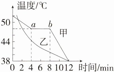 【拓展】甲物质在ab段处于(选填“固态”“液态”或“固液共存态”),甲物质凝固过程经历了min。