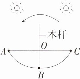 C 从早晨到傍晚,太阳东升西落,木杆的影子从图中的OA处运动到OC处,这说明A在西方、C在东方,所以C点在O点的东方。