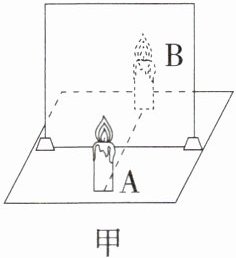(选填“变大”“变小”或“不变”)。(8)仅将玻璃板由图甲中的位置水平向右平移,蜡烛A的成像情况是