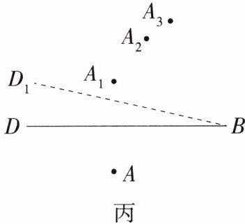 (3)保持乙图中点燃的蜡烛在 A 点位置以及 BC 边不动,将玻璃板绕 BC 缓慢顺时针转,如图丙所示。玻璃板转到$ BD_1 $位置时,像在