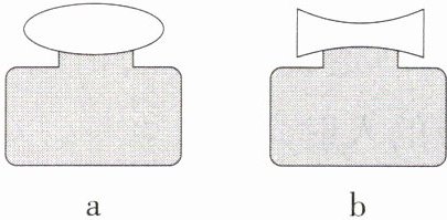解析 a瓶子的玻璃瓶盖中间厚、边缘薄,是凸透镜,对光具有会聚作用,容易在阳光下引发火灾;b瓶子的玻璃瓶盖中间薄、边缘厚,是凹透镜,对光具有发散作用,不容易在阳光下引发火灾。