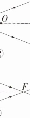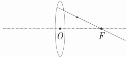 18. 「2024 吉林中考节选」如图所示,$ O $ 为凸透镜的光心,$ F $ 为凸透镜的焦点,请画出图中折射光线对应的入射光线。