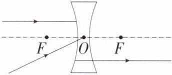 解析 凹透镜对光有发散作用,平行于主光轴的光线经凹透镜折射后,其折射光线的反向延长线过焦点;延长线过另一侧焦点的光线经凹透镜折射后将平行于主光轴;过光心的光线传播方向不变。