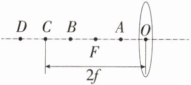D 眼球好像一架照相机,晶状体和角膜的共同作用相当于一个凸透镜,要成倒立、缩小的实像,其物距应大于二倍焦距,故物体可位于图中的D点。