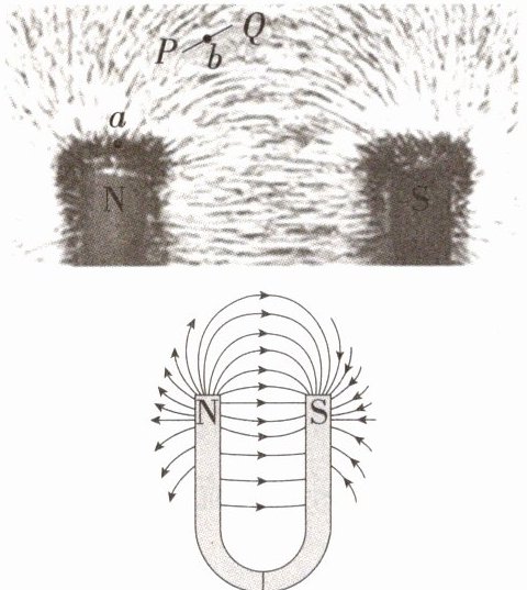 13. 新教材变式 [2024黑龙江肇源期末, ]如图所示,是用铁屑显示蹄形磁铁周围磁场的分布情况,由图可知,b点的磁场比a点的磁场______