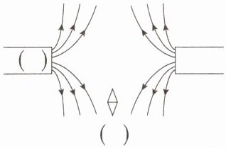 12. [2025山东青岛市南期末, ]图中画出了两个磁极间的磁感线。请在图中( )里分别标出磁体和小磁针的磁极。