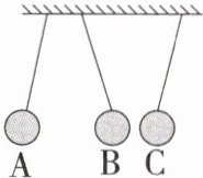 9.[★☆]如图所示的是三个用细线悬吊着的轻质小球A、B、C的相互作用情况,下列说法正确的是(