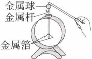 10.[2024黑龙江哈尔滨松北期末,★☆]如图所示,用毛皮摩擦过的橡胶棒接触验电器的金属球,验电器的两个金属箔张开一定的角度,验电器工作的原理是同种电荷互相
