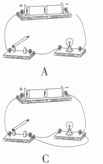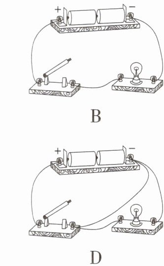 D 水果电池相当于电源,由图可知,电路中只有发光二极管一个用电器,电路中无开关,用导线将其连接。故选D。