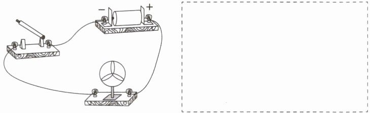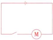 解析 由实物图知,电路中只有电动机一个用电器,开关接在电源正极和电动机之间,将各元件用相应的电路符号画出并用导线连接,注意导线应横平竖直,如图所示。