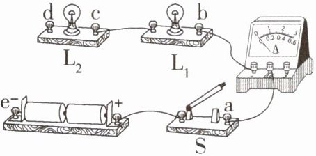 答案:L₁ L₂ 解析:用导线连接c、e接线柱,电流表与灯泡L₁串联,测量通过灯泡L₁的电流;用两根导线分别连接b、c和d、e,灯泡L₁被短路,电流表与灯泡L₂串联,测量通过灯泡L₂的电流。