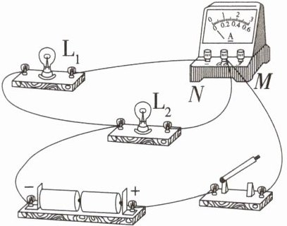 (选填$“L_1”$或$“L_2”)$的电流。若要用电流表测干路中总电流,则线头N