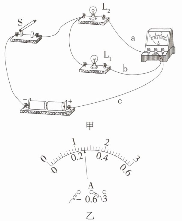 (3)如图甲所示,灯L₁、L₂并联,L₂与电流表串联,因此电流表测L₂中的电流。如图乙所示,电流表使用了0~0.6A的量程,分度值为0.02A,读数为0.26A。