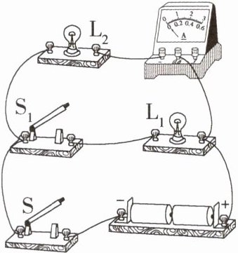 答案:并 L₂ 解析:分析电路图可知,电流的路径有两条,一条经过电流表和L₂,另外一条经过灯泡L₁和S₁,所以两灯并联,电流表和L₂串联在同一条支路上,所以测L₂的电流。