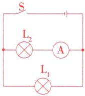 (1)由图甲可知,灯L₁、L₂并联,电流表与L₂串联,开关位于干路,其对应的电路图如答案图所示。