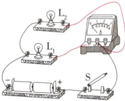 4. 用电流表分别在干路C处和$L_1$所在支路A处、$L_2$所在支路B处测得电流数据并记录到表中(如表1所示),由此可以初步得出实验结论: