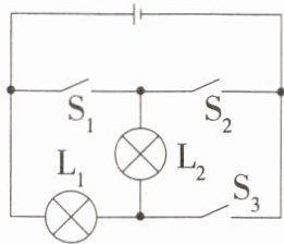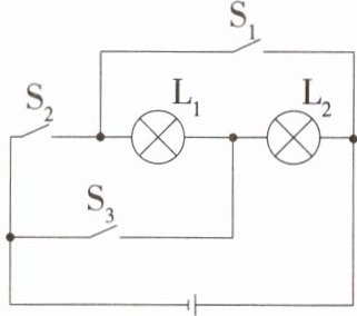 )A.闭合 $ S_2 $,断开 $ S_1 $、$ S_3 $,两灯串联