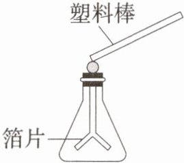 的性质。如果用摩擦过的塑料棒接触验电器金属小球(如图所示),验电器的金属箔片张开,这是因为箔片带同