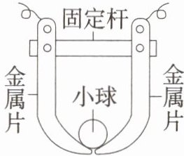 10. 如图所示是电扇中的一个自动保护装置。当电扇不慎被碰倒或倾倒时,小球会滚向一侧使电路
