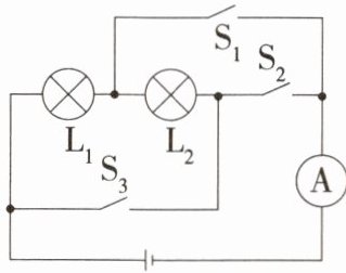 (1) 只闭合 $ S_2 $ 时,若电流表 A 的示数为 0.15 A,通过 $ L_1 $ 和 $ L_2 $ 的电流;