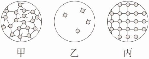 5. 「2025湖北武汉期中」如图是构成物质的固、液、气三态的分子模型,其中液态分子的模型是图______,物质分子结构从乙图变到丙图时,分子间作用力______(选填“变大”“变小”或“不变”)。