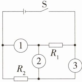 1. [2025河南洛阳期中]如图所示电路中,若使电阻$R_{1}与R_{2}$并联,图中的电表分别是(