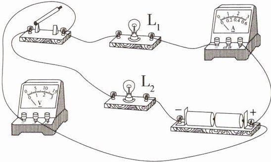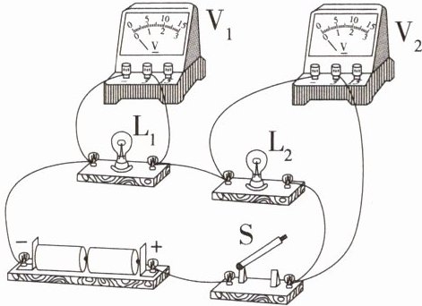 )A.灯泡$L_{1}和L_{2}$串联,电压表测的是$L_{2}$两端的电压
