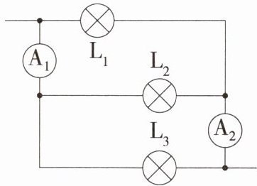 )A.$A_{1}测量通过灯L_{1}$、$L_{2}$的电流之和