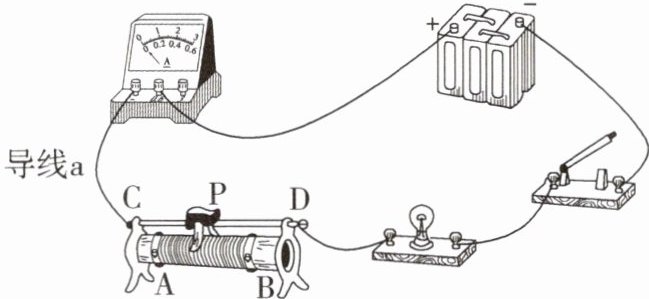 ;若想实现滑片 P 向 B 接线柱移动,灯变亮,只允许改动导线 a,有1