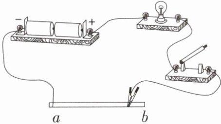 10. 如图所示,ab 为一根铅笔芯,闭合开关后,小灯泡发光,则铅笔芯中电流方向为