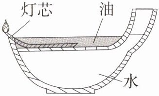 7. 「2024广东中考,」如图是古代省油灯的示意图。它下层盛水,能减慢上层油的消耗。点灯后,水在升温的过程中(