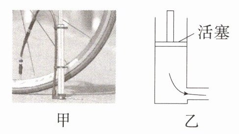8. 「2025吉林德惠期中,」如图甲所示,我们常用打气筒来给自行车轮胎充气,图乙所示为打气筒的结构原理图。当我们推动活塞向下运动时,活塞挤压筒内气体,使其充入轮胎。关于这个过程的说法正确的是(