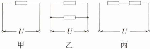 4. [2025江苏常州武进月考]如图所示,甲、乙、丙三个电路电源电压U相等,每个定值电阻阻值相等,电路总电阻分别为$R_1、$$R_2$和$R_3,$电阻阻值最大的是