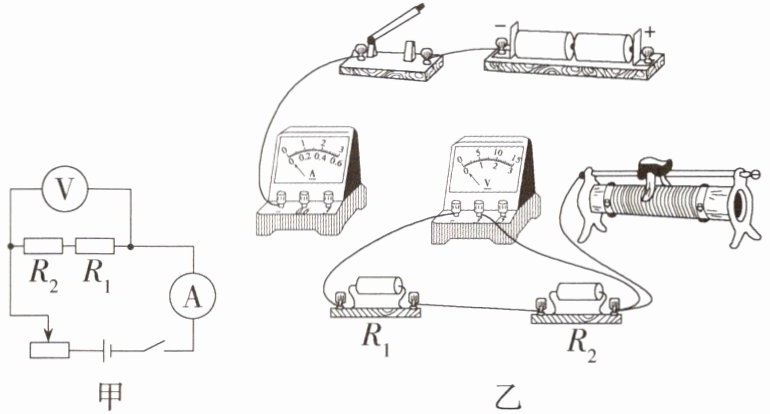 5.在学习“串联电路的总电阻与各串联电阻之间关系”的时候,小强和小刚利用滑动变阻器(铭牌上标有“20Ω 1A”)、两个定值电阻(5Ω、10Ω)、电压表、电源等器材对此进行了探究。他们设计了如图甲所示的电路图。